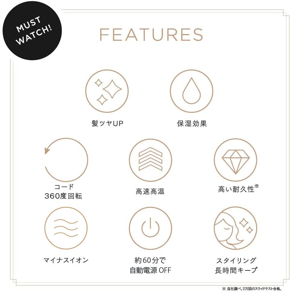 独自開発の温度コントロール技術との組み合わせにより、常に均一の温度でサロン帰りのようなウルッ、ツヤッな髪に。